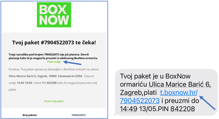 Kada dostavimo paket u paketomat, obavijestit ćemo Vas porukom koja sadrži link za plaćanje (označeno niže).