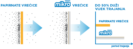 vrećice najbolji i jedini izbor za Vas. Svatko tko proba ovu vrstu vrećica, u pravilu se nikada ne vraća na papirnatu verziju. Vrećice su izrađene posebne vrste materijala poznatog pod nazivom netkana tkanina. Materijal karakterizira velika otpornost, puno bolja filtracija zraka koji kroz njega prolazi. Samim time u vrećicu možete usisati i oštre predmete poput stakla, kamenčića bez straha da će puknuti. Premda to nije dobro za motor usisavača i treba izbjegavati usisavanje vlage, same vrećice mogu i to podnijeti. Vrećice omogućuju ravnomjernu usisnu snagu u svim fazama napunjenosti i samim time traju duže od papirnatih.